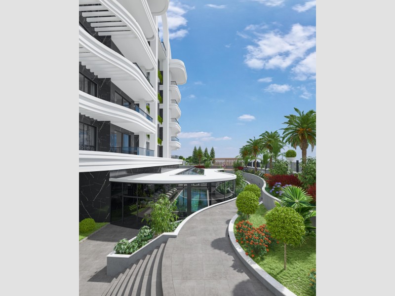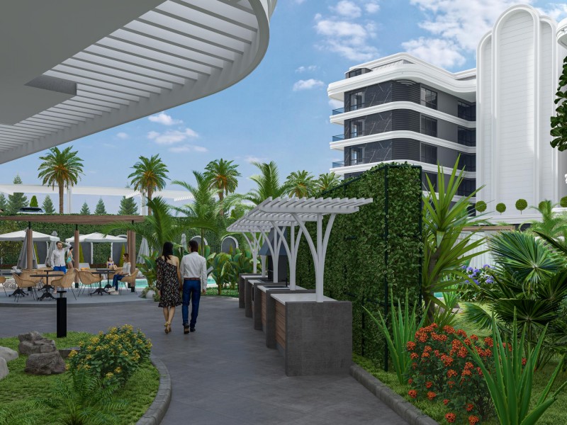 Mahmutlar merkeze yakın, alışveriş ve sosyal alanlara yürüme mesafesi